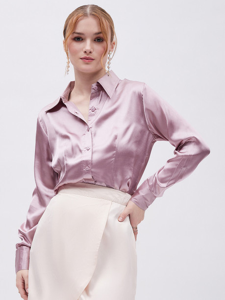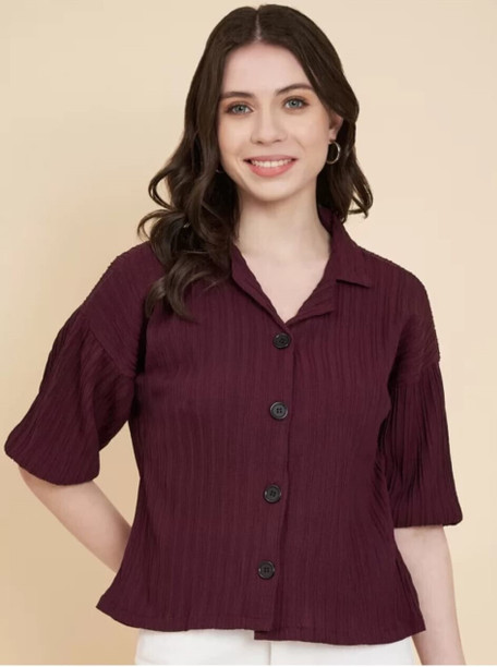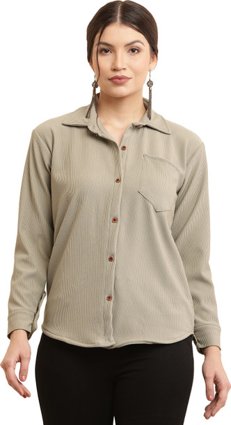 Women Regular Fit Solid Lapel Collar Casual Shirt