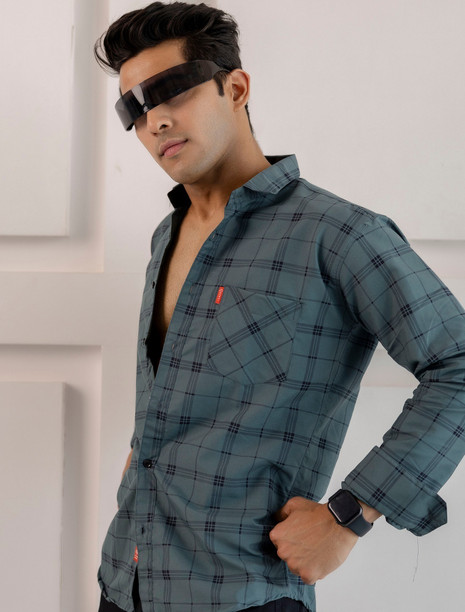 Men Slim Fit Checkered Spread Collar Casual Shirt