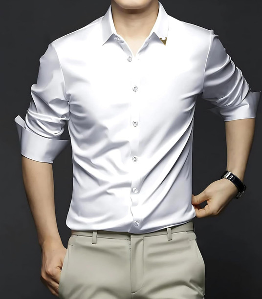 Men Regular Fit Solid Button Down Collar Formal Shirt