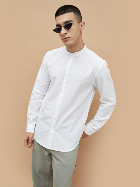 Men Slim Fit Solid Mandarin Collar Casual Shirt