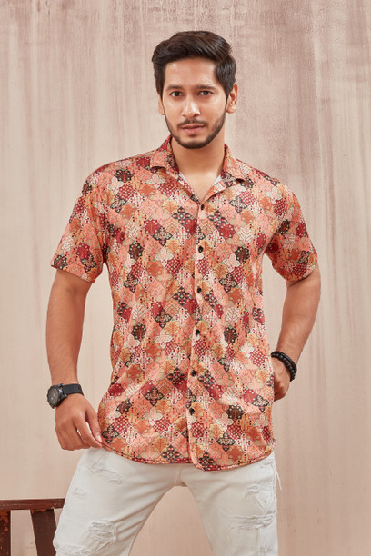 Men Regular Fit Printed Spread Collar Casual Shirt