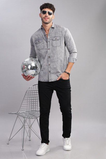 Men Regular Fit Washed Spread Collar Casual Shirt