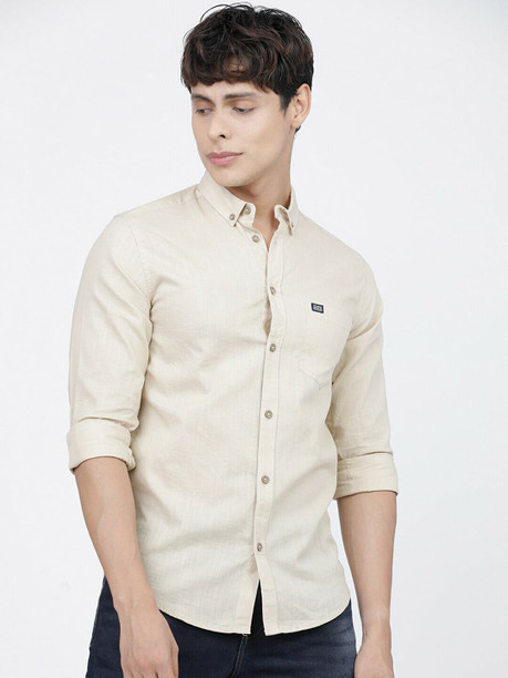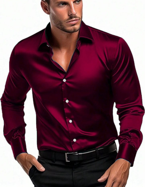 Men Regular Fit Solid Spread Collar Casual Shirt