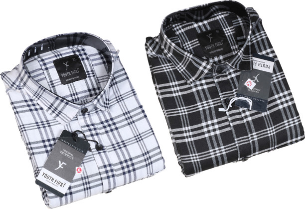 Men Regular Fit Checkered Spread Collar Casual Shirt