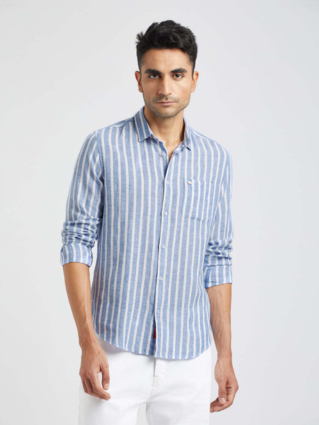Men Slim Fit Striped Spread Collar Casual Shirt