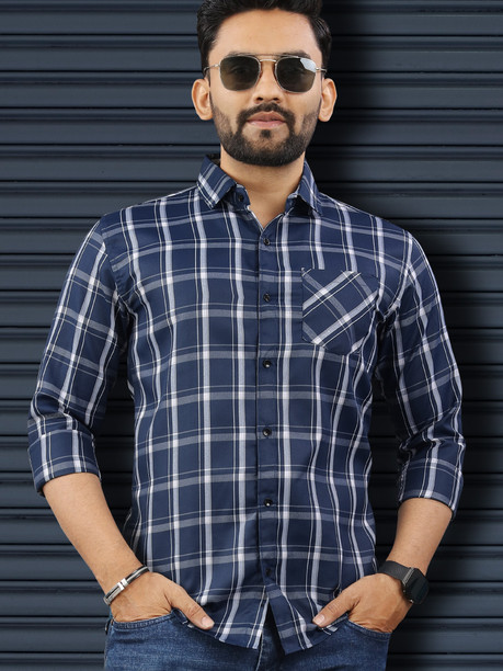 Men Regular Fit Checkered Spread Collar Casual Shirt
