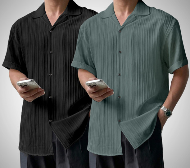 Men Regular Fit Solid Spread Collar Casual Shirt