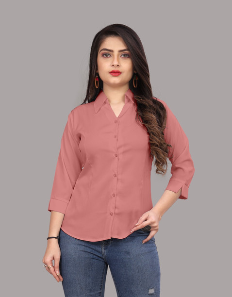 Women Regular Fit Solid Spread Collar Casual Shirt