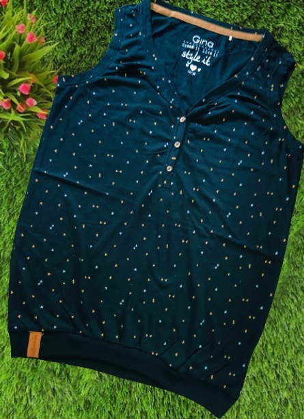 Women Printed V Neck Viscose Rayon Black T-Shirt