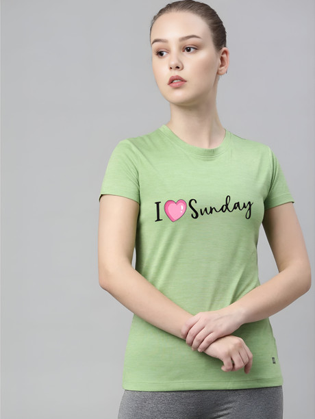 Women Graphic Print Round Neck Polyester Light Green T-...