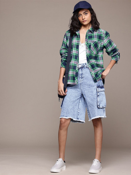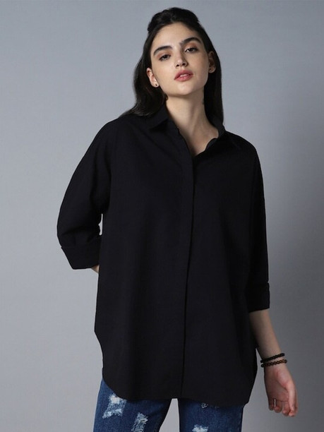 Women Boxy Fit Solid Spread Collar Casual Shirt