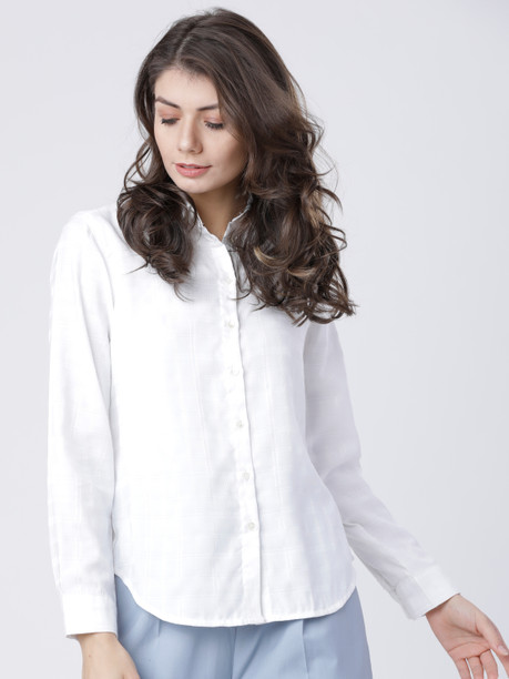 Women Regular Fit Solid Curved Collar Formal Shirt