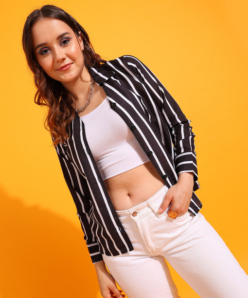 Women Regular Fit Striped Curved Collar Casual Shirt