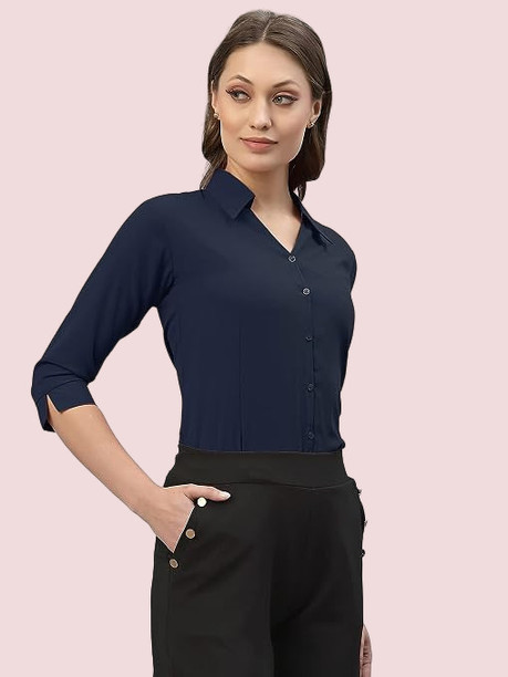 Women Regular Fit Solid Spread Collar Formal Shirt